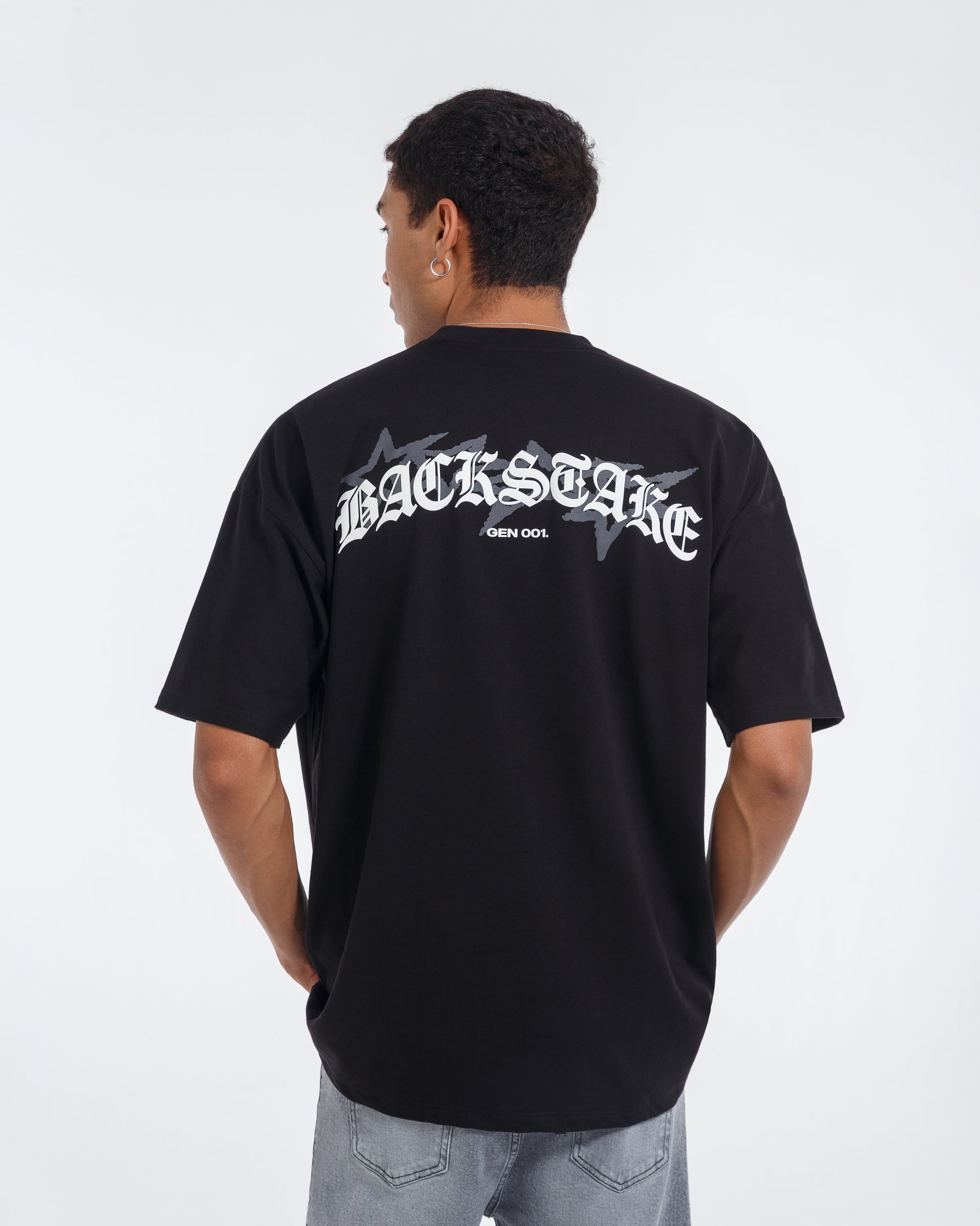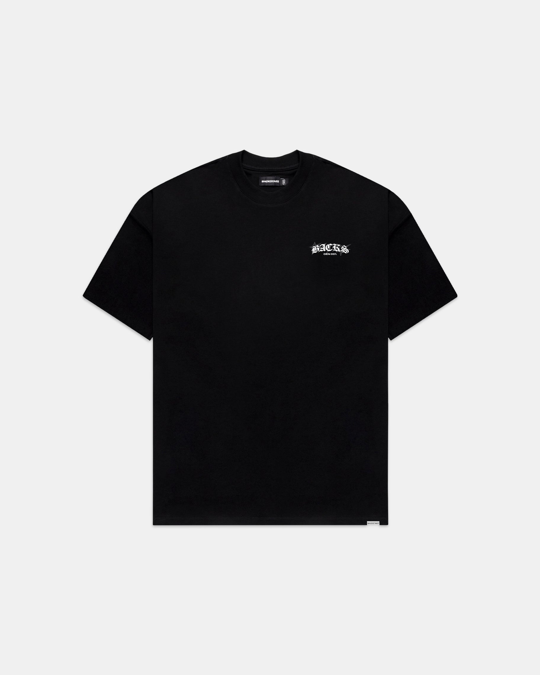 Camiseta de color Negro, elaborada en pima algodón 100% de alto gramaje (310gr). Diseño delantero y posterior en alta densidad / Serigrafia.
