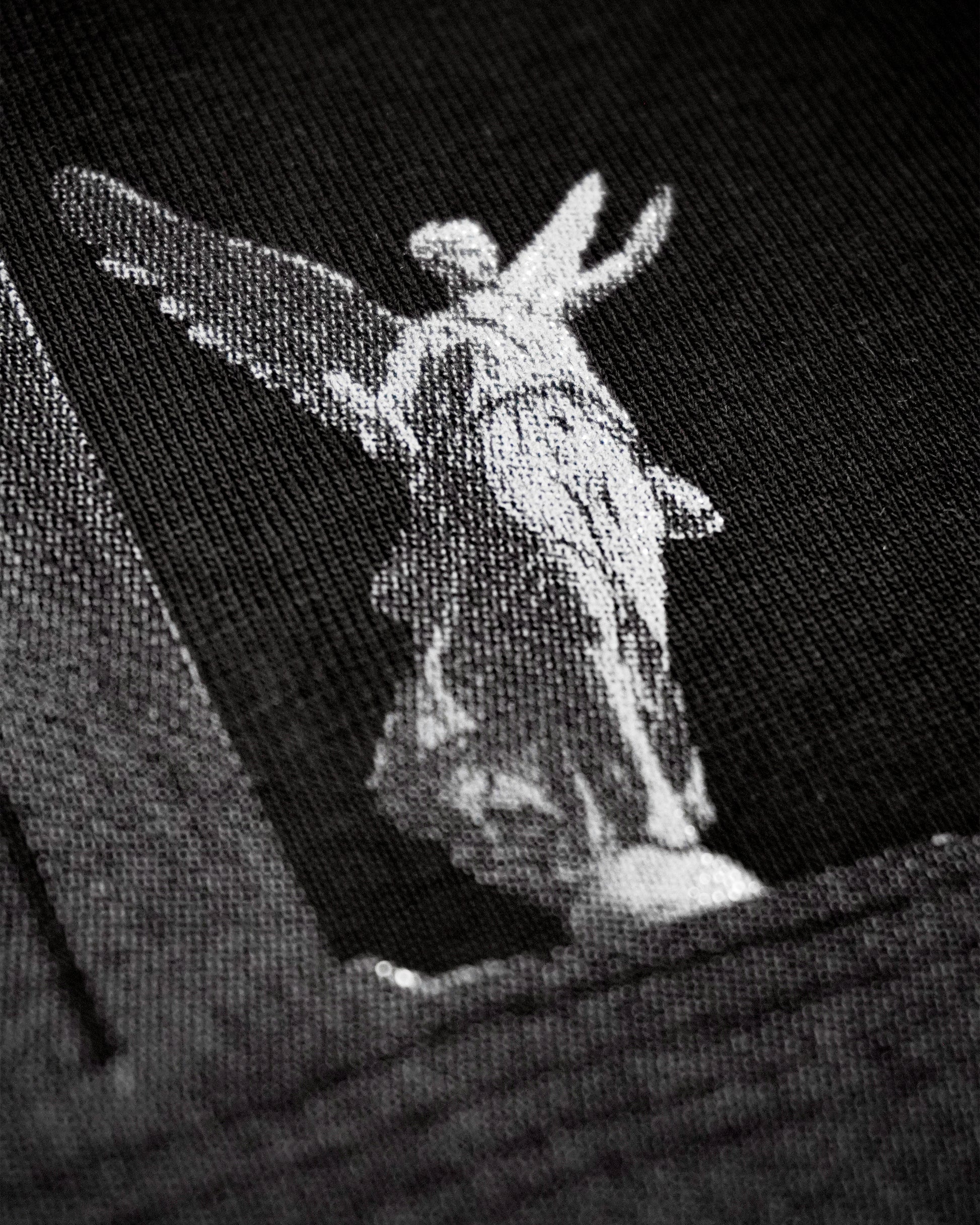 Camiseta color Negro, elaborada en algodón premium 100% de alto gramaje (250g). Diseño trasero en Serigrafia.