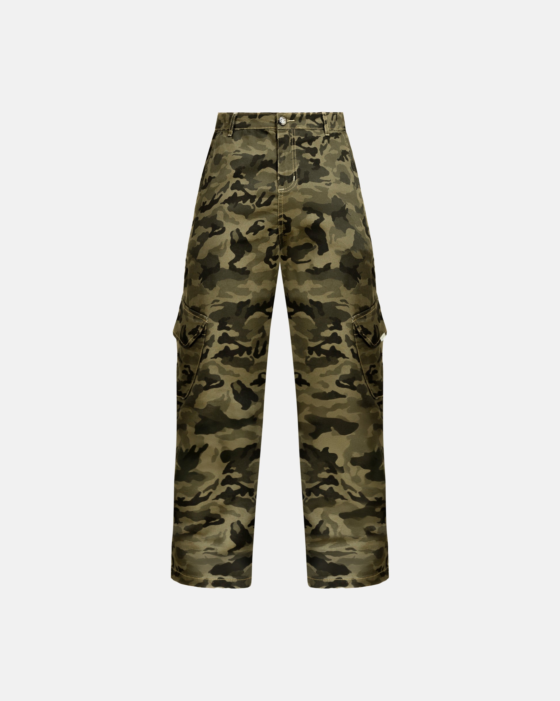 Pantalon cargo camuflado, Fit recto con bolsillos laterales, Hecho en Drill con acabados premium.